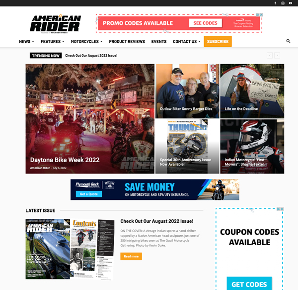 If your business caters to fans of V-twin- or custom-oriented motorcycles, you want direct access to enthusiasts who are eager to spend money on their favorite hobby. And American Rider has ’em. Lots of ’em. Our ever-expanding social-media footprint, American Rider’ reach continues to expand in every direction, reaching a significant number of enthusiasts and influencers on the consumer and dealer levels. All of which means that a marketing partnership with American Rider makes more sense than ever.